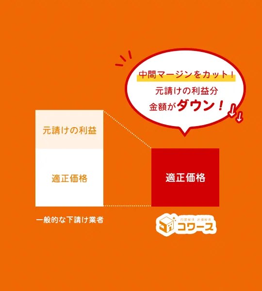 内装解体・店舗解体・スケルトン工事・原状回復工事のスペシャリストであるコワース東海は直請け・自社施工により従来解体にかかる中間マージンなどの費用を削減しています。